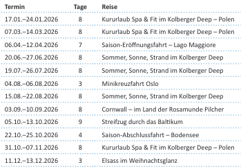Reiseübersicht 2026