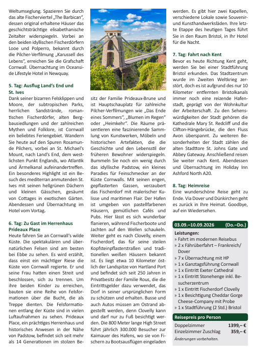 Bis 6 Wochen vor Reisebeginn zu erreichende